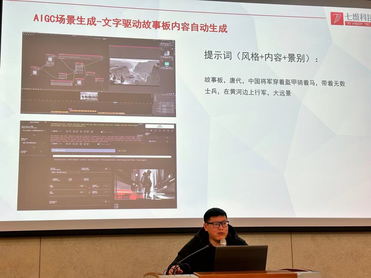 程文老师不仅理论联系实际,详细阐述了虚拟拍摄棚的搭建原理、技术细节和操作流程,还通过丰富的案例分析,与听众共同探讨了虚拟制作技术在未来电影制作中的广阔前景和趋势,通过既富有深度,又不失生动的讲解,使同学们详细介绍了XR(扩展现实)的应用和内容生成自动化的应用普及。