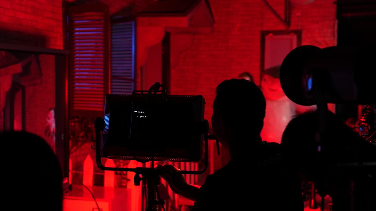在工作坊中,王老师首先介绍了影视灯光器材的种类、功能、特点以及使用技巧,让同学们对影视灯光器材有了全面的了解。随后,他通过实际案例,深入讲解了灯光设计与创意的重要性,并引导同学们进行了灯光设计与创意实践。在实践拍摄环节,王老师鼓励同学们大胆尝试,发挥创意。他指导同学们根据场景需求进行灯光设计,并通过不断调整灯光的位置、角度和亮度,创造出独特的视觉效果。同学们在王老师的引导下,不仅掌握了灯光器材的操作技巧,更学会了如何将灯光与故事情节、人物情感相结合,使画面更加生动、引人入胜。
