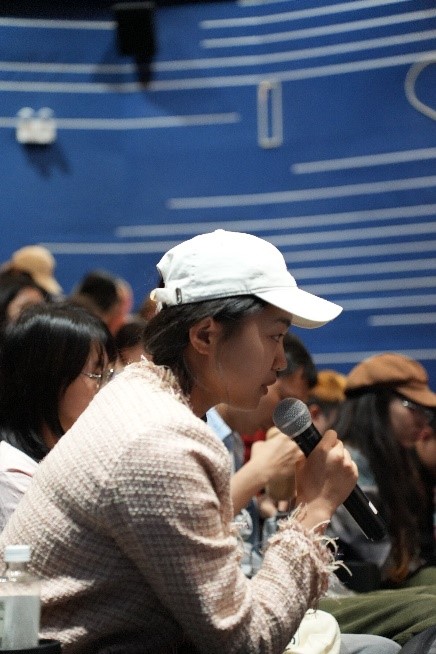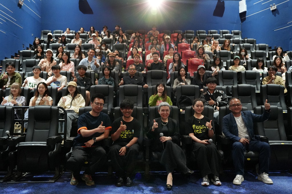 放映结束后,导演与主创团队登台,与同学们分享创作心得,学生们踊跃发言,与各位主创探讨影片画面技巧手法和情节创作的经验,现场学习氛围浓厚。刘苗苗老师耐心细致的回答为在座同学们分享了许多有趣幕后故事、包括对主演的选择上,不抗拒任何素人的表演,对影片注入更深层次的情感才是关键。同学们开拓眼界的同时,也认知到了探索电影创作的无限可能和乐趣。
