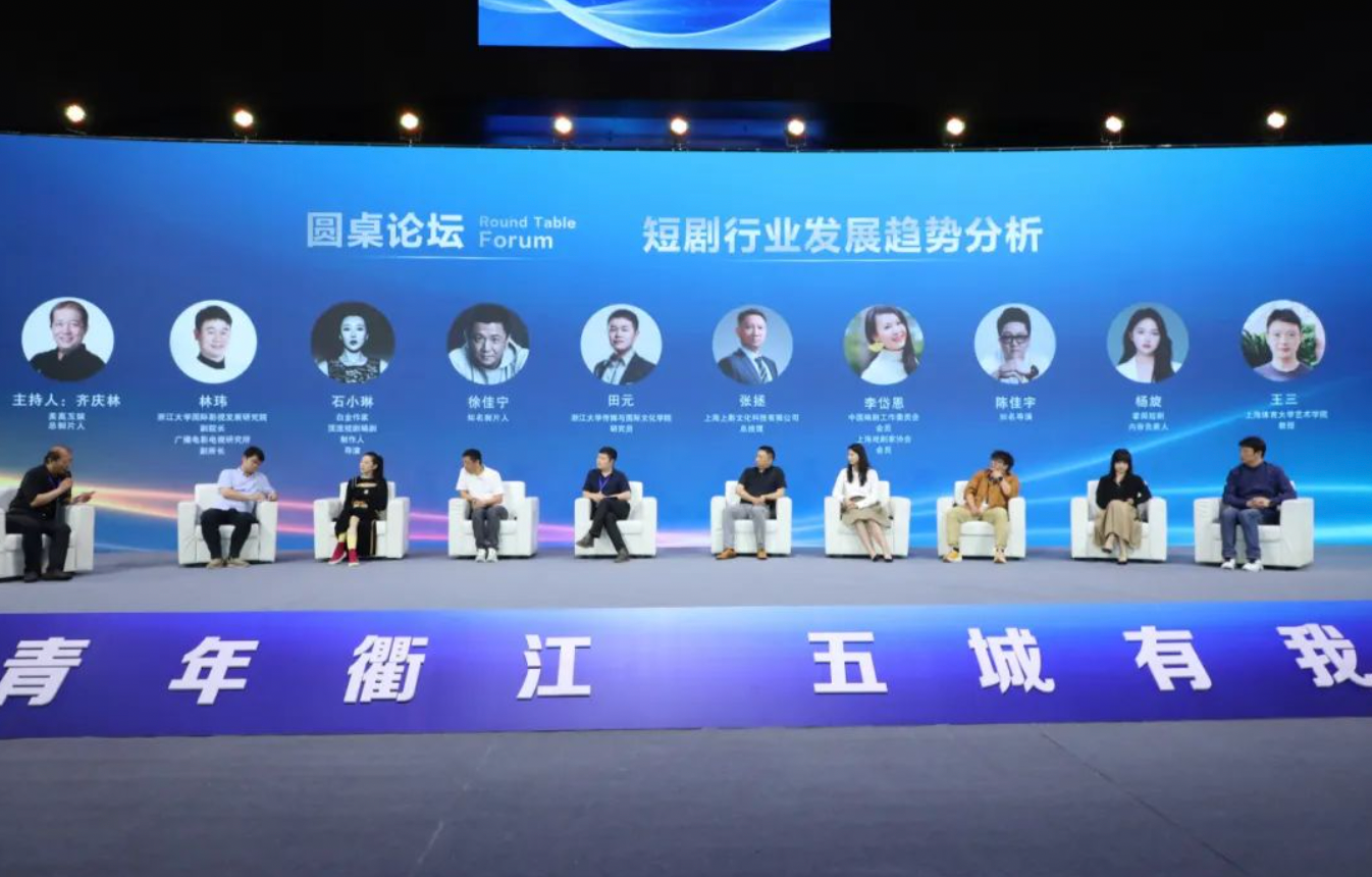 活动现场,由美高互娱总制片人齐庆林发起,浙江卫视视频中心主任赵天扬、中央文化和旅游管理干部学院研究员孙佳山等受邀嘉宾和与会专家围绕短剧行业发展趋势分析作为相关话题作交流发言。现场还宣发了青年衢江·短剧节固定IP创意。