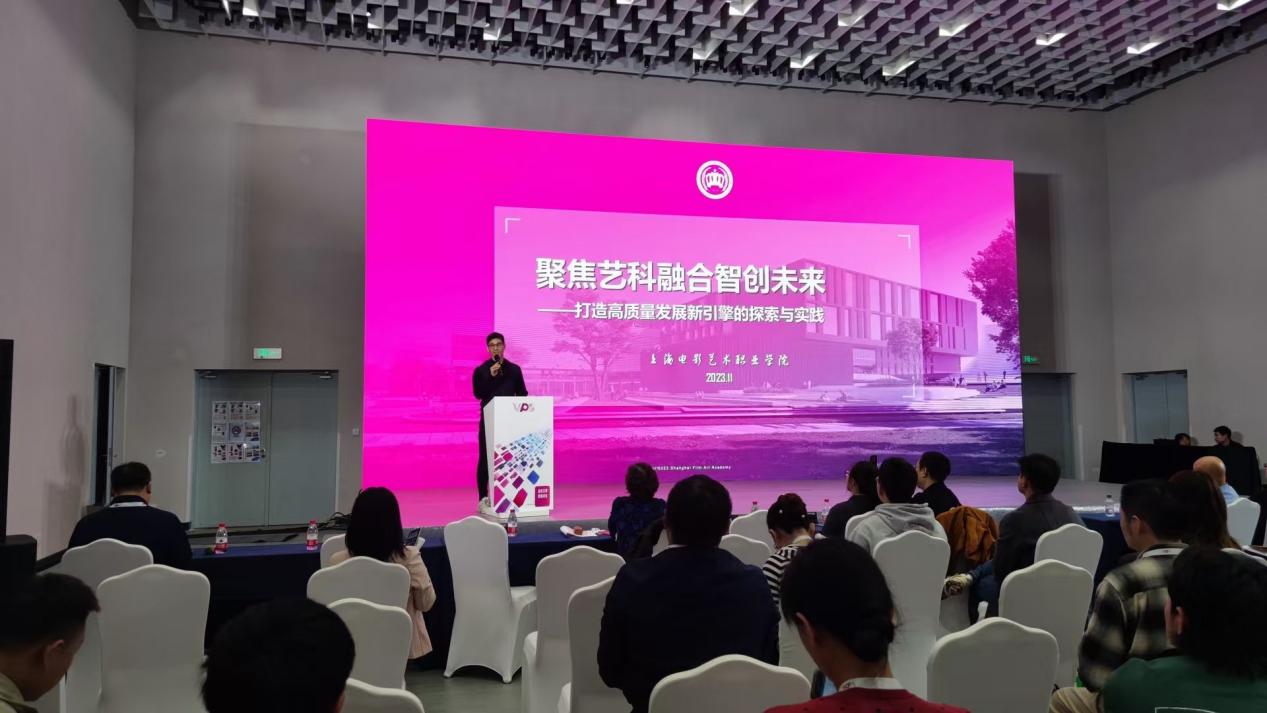 中国艺术职业教育学会艺术科技委员会副主任、上海电影艺术学院副校长是科圣在“大视听实践教学创新研讨论坛”上进行了题为《聚焦艺科融合智创未来——打造高质量发展新引擎的探索与实践》的案例分享,强调了视听科技对教育创新的推动作用,阐述了跨学科合作实现教育内容和方法创新的路径,并分享了影视科创学院在艺科融合方面的实践成果。另外,学院特聘行业导师张嘉亮老师作为《狼图腾》、《富春山居图》等多部电影的视效总监也积极参与其中,为会议提供了多种角度和观点。