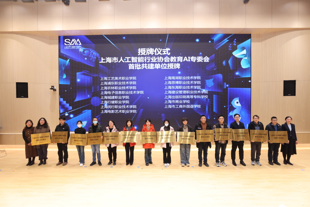 我校等59家单位入选上海市人工智能行业协会教育AI专委会首批共建单位并上台接受授牌。