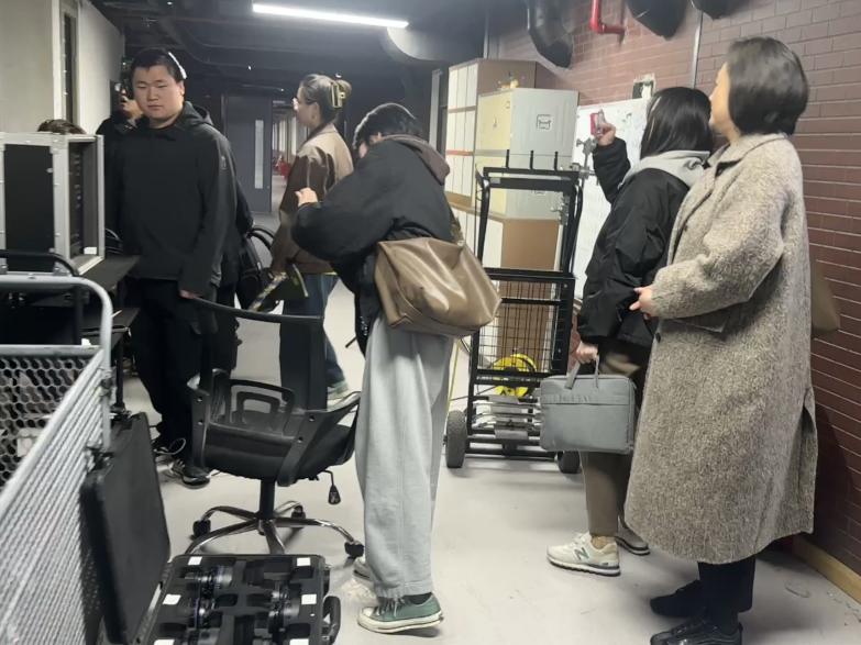 会议期间,影视科创学院影视编导负责人杨张嘉卉和摄影摄像技术舒星博热情接待索広代表张鹏凯、董倩茹、王芳蕾、钱瑷琦。上海索广映像有限公司的代表,并带领他们参观了学校映时代摄影棚。这次参观不仅展示了学院先进的教学设施和丰富的实践资源,也为双方提供了更多的合作灵感和可能性。通过实地参观,企业代表对学院的教学环境和学生的实际动手能力有了更深入的了解,为未来的合作奠定了坚实的基础。