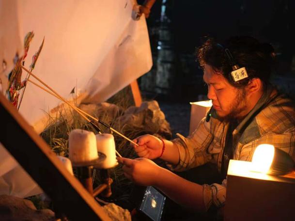 图2 《灯影绾长安》组参赛队员测试皮影戏画面