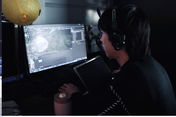 图12 《灯影绾长安》组林包震华、《归途》组冯艺涵正根据实情修改虚幻引擎