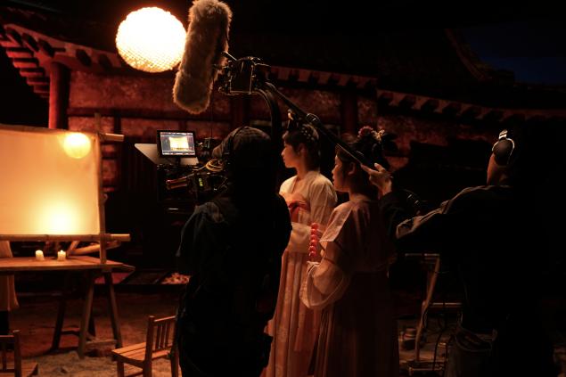 图8 《灯影绾长安》组摄影李真真拍摄现场工作照