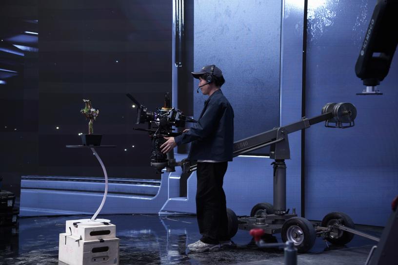 两组参赛作品以“历史回溯”与“未来寓言”双线并进,通过创新叙事展现虚拟制作的表达潜力:张亦然老师和黎芳苗老师指导的作品《灯影绾长安》,以皮影戏为时空密钥,构建“废墟-盛唐”双重视界,通过虚实光影的戏剧性切换,让传统非遗符号成为历史记忆的载体。在数字技术加持下,唐代市井的粒子光效与战场硝烟形成强烈视觉对冲,赋予传统文化以超现实张力。孙鹏老师和苏锴老师指导的作品《归途》则以扫地机器人为主角,开创“非人类中心叙事”实验:通过机械臂运镜与LED虚拟穹顶,构建末日废墟的压迫感;利用AI生成影像技术,呈现文明覆灭与科技重生的轮回图景。两组作品虽题材迥异,却共同践行“技术为叙事赋能”的理念,通过虚拟制片技术打破创作边界,在时空折叠中完成对文明本质的诗意追问。