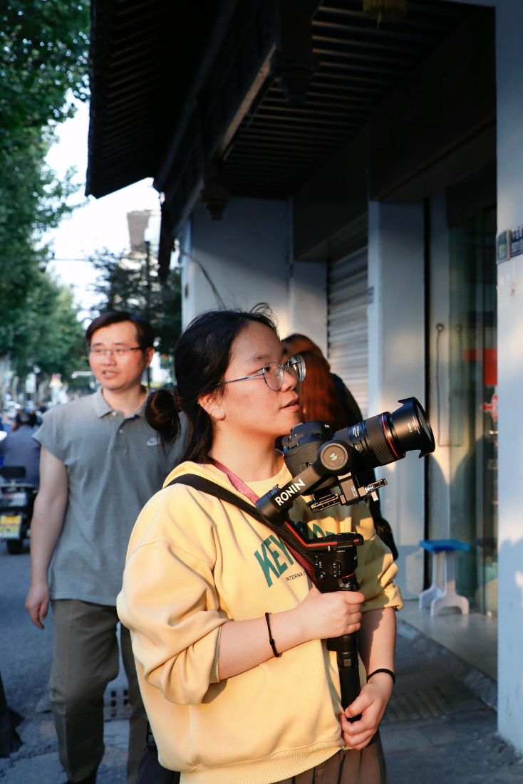 课堂上苏锴老师“城市即片场”的教学法,陈秋妍老师逐帧分析的剪辑结构让她深刻领悟“设备是肢体的延伸,审美才是灵魂的显影液”。三年来,她严谨对待每一次拍摄:从镜头更换的标准化手势,到DIT工作站的元数据管理,影视工业的精密性已内化为职业本能。而当王亚洁老师引导她捕捉“创作主体的原始灵思”时,那些打破构图的倾斜镜头与非常规色温设定,正见证着技术规训与艺术探索的共生。
