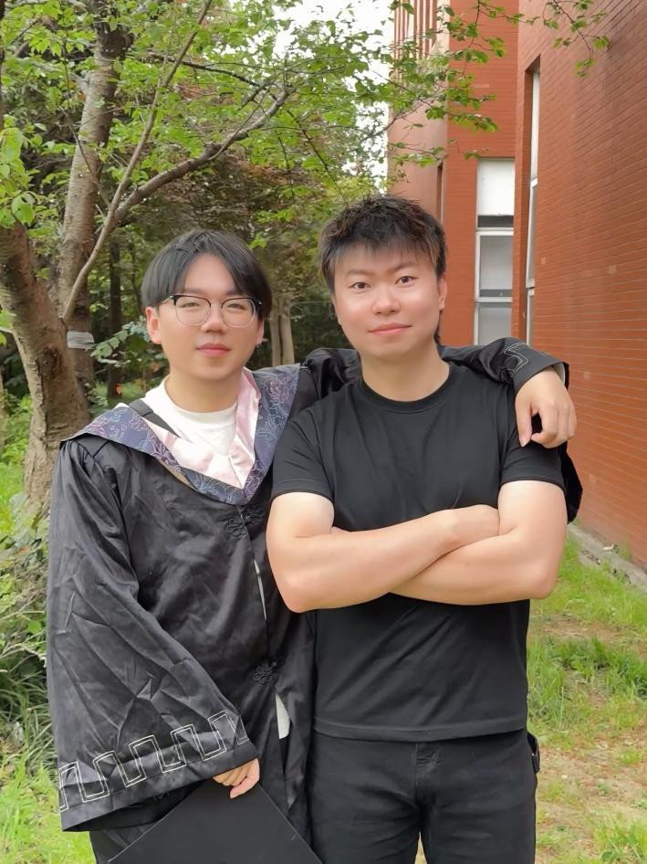 图3 吴周渔(左一)及指导教师苏锴师生合影