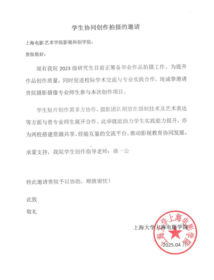 图1 上海大学上海电影学院邀请摄影专业进行联合创作