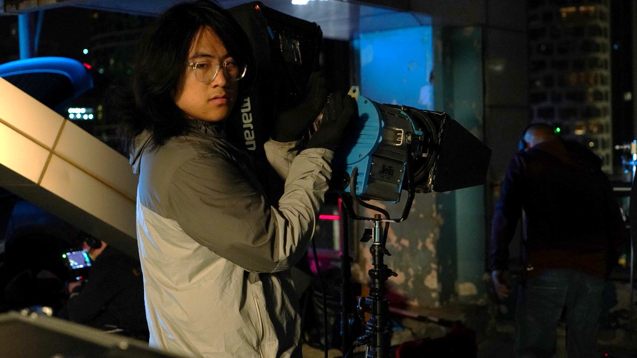 图11 24级影视编导班侯宏远同学担任灯光助理
