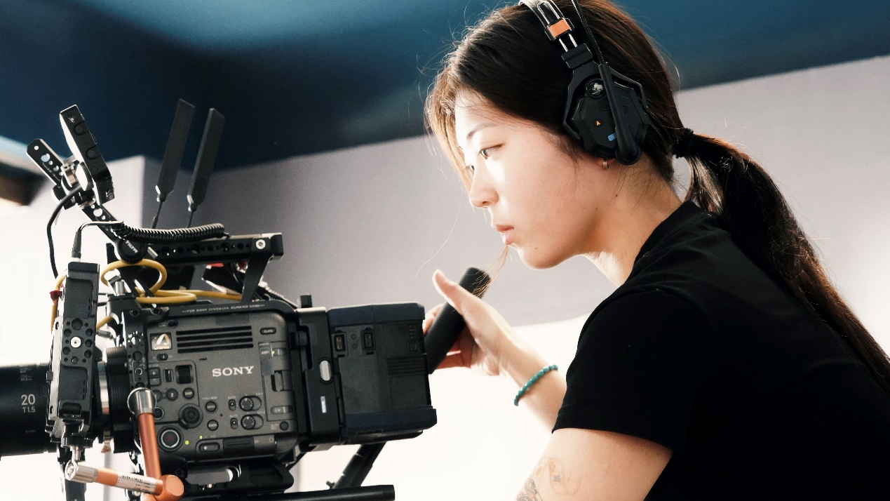23摄影摄像技术班徐滟茹同学(摄影掌机): 作为影像画面的直接创作者,徐滟茹同学在摄影指导的整体把控下,肩负起操作索尼威尼斯ALTA B以及如影4D等专业电影机进行实拍的重任。她深刻理解导演和摄影指导的构图与运镜意图,在现场精准转化为镜头语言。无论是手持拍摄中沉稳保持画面动态稳定以营造沉浸感,还是精心设计推拉摇移的运镜轨迹以强化戏剧张力,她都展现出对镜头运动和画面美感的娴熟驾驭。同时,她主导摄影机关键参数设置(如快门角度、光圈值、ISO及编码格式),并与DIT紧密合作确保原始素材数据的安全与规范,为后期制作奠定了坚实基础。
