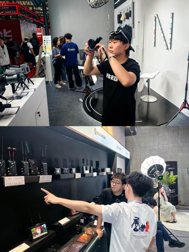 学院教师团队以“教学研一体”为特色,展会期间主动对接行业动态,为专业课程注入新动能。影视科创学院摄影摄像技术专业教师代表苏锴、舒星博等人对参展企业展出的最新摄影器材、影视制作设备等进行了深度体验与技术交流。几位教师结合教学实践需求,详细考察了新产品的技术特性、应用场景与教学适配性,并就如何将行业前沿设备与技术有效融入课堂教学内容设计与实践项目开发进行了深入探讨。此举为学院持续优化课程体系、提升实训教学质量积累了宝贵的一手资料,也为引导学生认知行业技术发展趋势奠定了坚实基础。