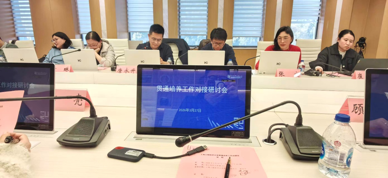 为进一步深化“高本贯通”人才培养模式改革,提升协同育人质量,2026年3月27日下午,上海电影艺术职业学院影视科创学院院长褚亮、影视多媒体技术专业主任孙鹏及相关专业教师、教务处负责人一行,赴上海工程技术大学参加贯通培养工作对接会。上海工程技术大学教务处副处长唐永升主持会议。此次对接会旨在通过两校深度交流,巩固影视多媒体技术(高职)与数字媒体艺术(本科)专业的贯通培养成果,确保人才培养方案的高效落地与质量监控。