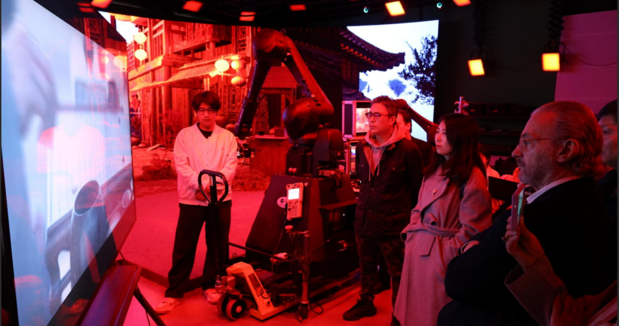 代表团一行首先参观了影视科创学院的多个核心实验实训基地。在智能影视虚拟仿真实训室,大使先生亲身体验了基于AI驱动的虚拟制片系统与数字化后期流水线。我院党支部书记、专业负责人向代表团详细介绍了学院如何将党建引领融入职业教育,通过“科创+影视”的深度融合,培养适应全球化竞争的高素质技术技能人才。卡夫雷拉大使对学院能够将前沿影音科技转化为成熟的教学体系表示高度赞赏,认为这为未来中哥两国在电影工业标准对接与人才联合培养方面提供了宝贵的范式。