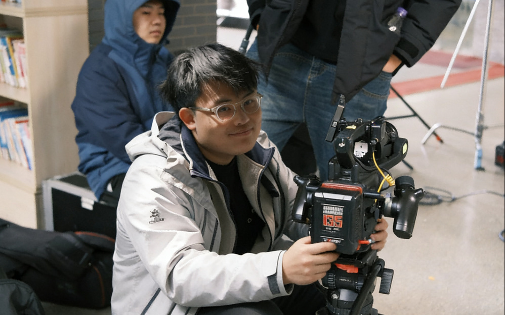 25编导二班刘上善同学担任摄影助理,全程坚守岗位、认真履职,细致管理摄影器材,协助完成摄影机参数调试、镜头更换等工作,高效配合摄影组完成场景转换,严格遵守片场操作规范,全力保障设备安全与拍摄流程顺畅,成为摄影组高效运转的重要助力。