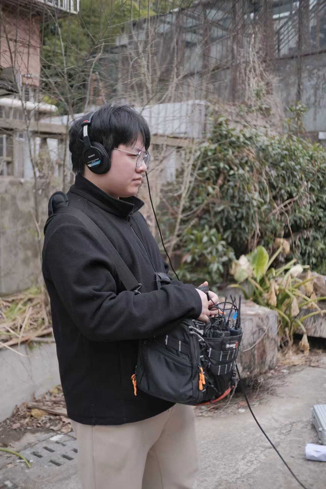 23影视编导(新媒体)班秦沐阳同学担任声音指导,作为影片声音创作的核心,他全面负责现场收音、声音设计与音频质量把控,精准捕捉环境音、台词音等各类声音素材,结合影片情感基调设计声音层次,优化收音方案、规避现场噪音干扰,以专业水准打造贴合剧情的声音氛围,为影片赋予饱满的听觉质感,助力叙事表达。