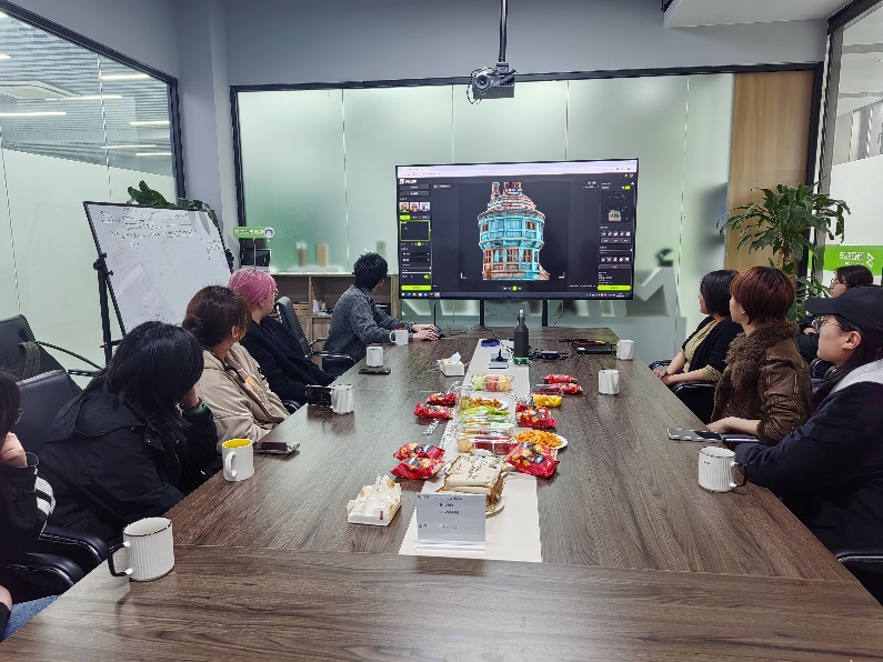 在技术交流环节,企业负责人王炜重点展示了其3D数字资产AI生成平台。该平台集成了图生模型与AI可控贴图生成功能,能大幅压缩传统建模贴图工作的周期。在随幻技术人员的指导下,多位同学踊跃尝试,通过简单的文本描述或参考图片,便快速生成了高质量的3D模型贴图,亲身体验了AI工具在创意实现阶段的惊人效率。这一实践不仅让学生对AI赋能专业创作有了直观感受,也为AI应用实践及虚拟制作等方向的课程提供了生动的教学范例。