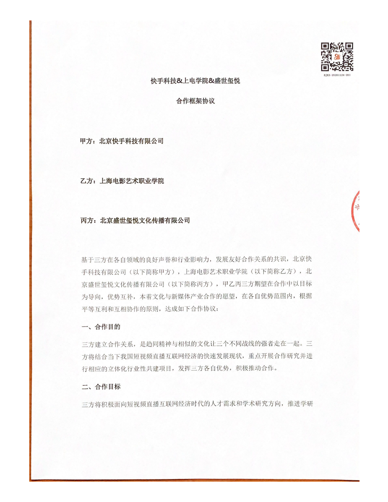 播音与主持专业携手北京快手科技有限公司、北京盛世玺悦文化打造...