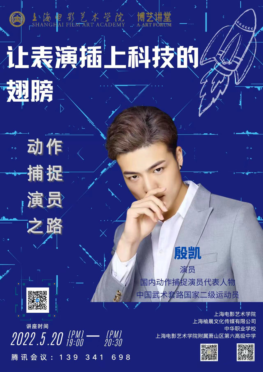 2022年5月20日晚19:00在这个充满浪漫气氛的晚上,上海电影艺术职业学院开展了一场关于动作捕捉演员,用技术实现角色虚拟化呈现的有趣访谈。这次有幸邀请到殷凯老师作为主讲人,殷凯老师不只是一名演员,更是国内动作捕捉演员的代表人物、中国武术套路国家二级运动员。