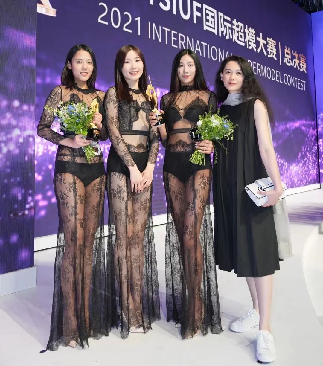 图 获奖选手与时尚表演与传播专业负责人姜雁飞老师