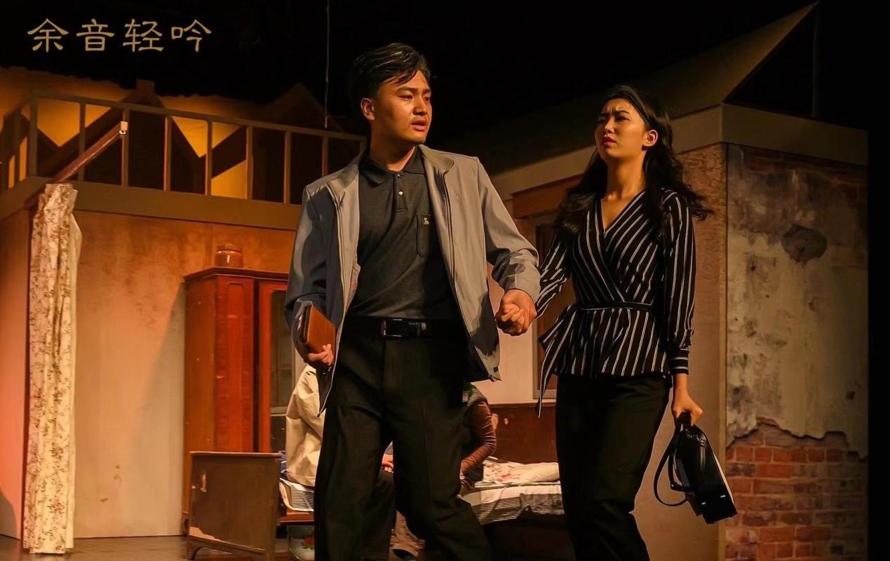 《余音轻吟》是学院音乐剧表演专业与上海现代人话剧社联合出品的原创话剧,于2020年11月18日至20日在上海黄浦剧院进行了三场剧目展演。该项目依托校外实践工作室,培养学生的“产学研创”能力。由李蓉编剧,表演艺术中心赵楚韩老师作为导演,赵倩老师作为项目制作人,王子轩老师原创音乐主题曲完成的作品。演员以2018级音乐剧11位同学和1位职业演员共同出演。本作品先后入选了2013江苏省新剧本征选、2019年上海文化发展基金会资助项目。该剧作为表现上海民生重大问题和题材的一部舞台剧作品,成为了2020年上海文化发展基金会舞台剧目项目,被授予高度评价。