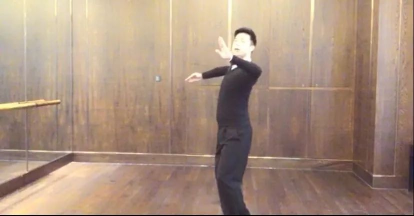 实践类课堂由线下转入线上,教学环境和教学手段面临较大局限,但从另一个角度看,也是对实践类课堂的一次开放性创新。要突破常规课堂的概念,不再是老师说,学生做,而是有更多的碰撞和沟通,从而引发思考,提升学生对专业学习的认知程度。李老师以摩登舞姿态的重要性为切入点,展开对基本技术、云双人舞的探讨和思考。李老师巧妙的运用身边的道具当做自己的“舞伴”,细致的讲解了肩胛骨、后背、中段、核心与架型的联系、摩登男士基本姿态与架型、摩登舞中双人位置关系、男生右侧与女生右侧时刻贴合保持稳定、C.B.M.P反身动作位置、C.B.M反身动作等知识要点。国标舞是双人共同完成的一项竞技艺术,通过单人基本功的训练最终要运用到双人的配合中,在线上教学中无法实现舞伴共同进行双人舞训练。利用这个阶段对舞伴进行充分沟通和了解,使用设备技术进行云双人舞的探索创新,最大程度保证双人舞概念在课堂训练中不脱节。