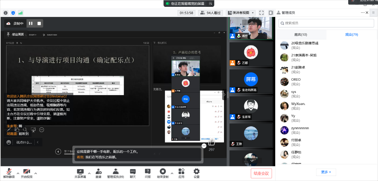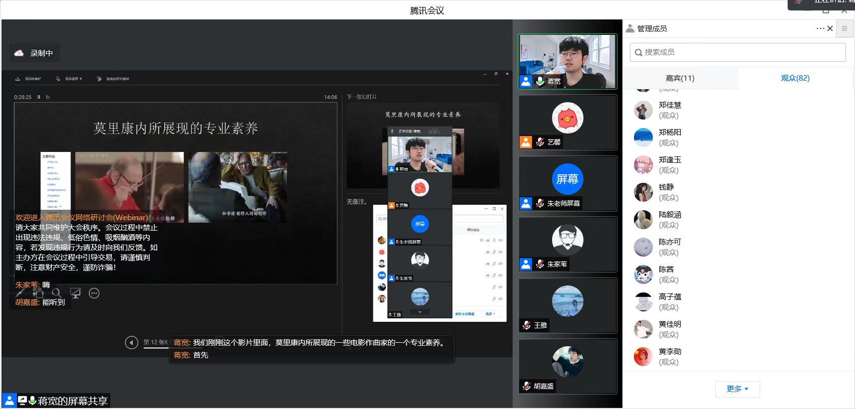 2022年4月8日,一场主题为《窥探大师的秘密》——音乐&表演专业演联合教学刷屏朋友圈,音乐剧表演专业、戏剧影视表演专业的学生老师们相聚在腾讯会议,感受大师音乐创作的神奇,了解电影中音乐创作的流程和方法。