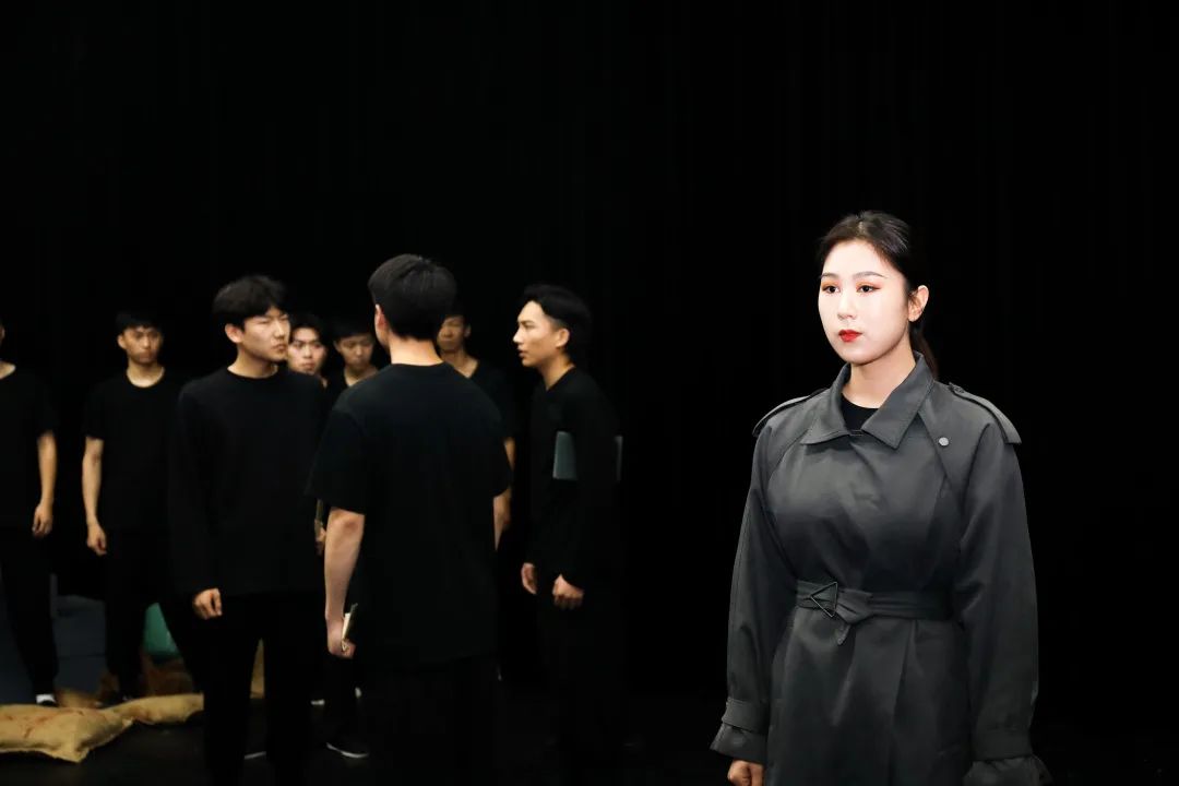 紧接着,导演王雅老师汇报了《海上兵站》舞台剧的创作排练的起步工作以及导演构思。这部舞台剧的主创思想是两代人在同一时空进行对话,重温经典,感受信仰。演员们向梁老师汇报了刚刚初排出来的两场戏的片段。