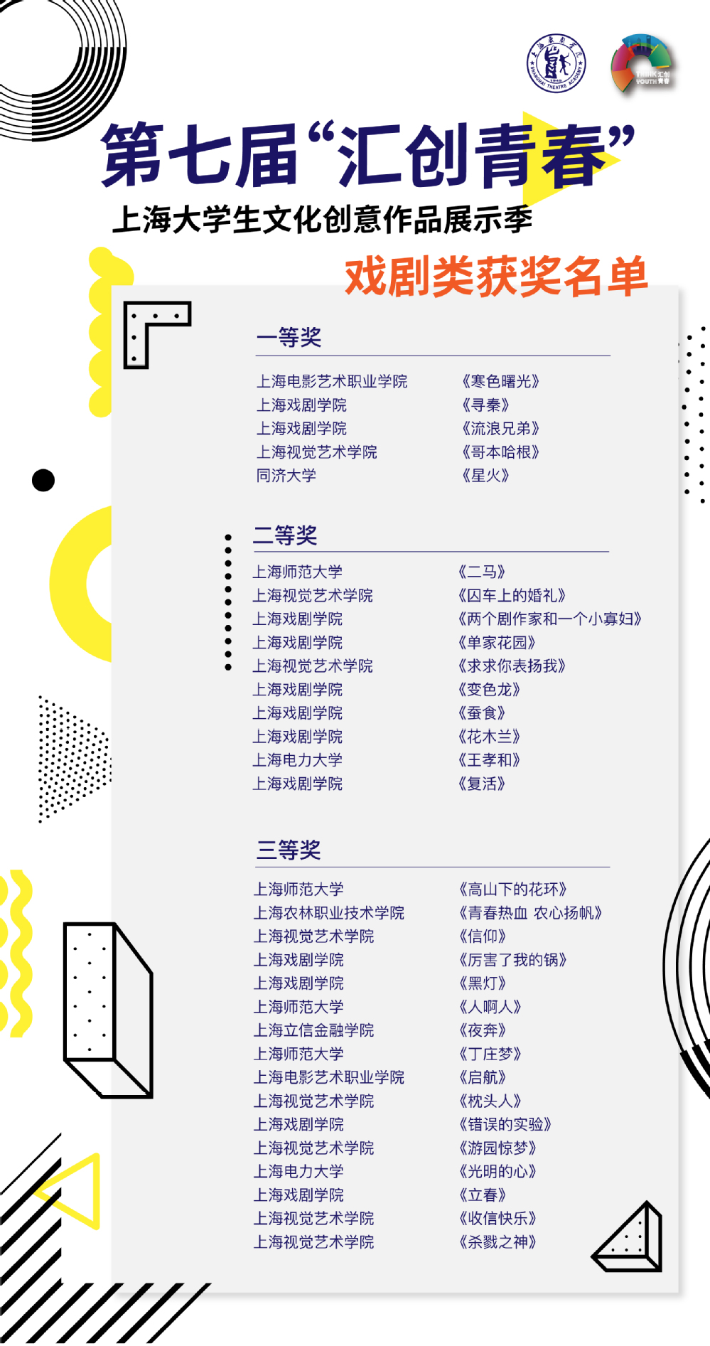2022年6月22日,学院音乐剧表演专业原创音乐剧《寒色曙光》荣获了第七届“汇创青春”上海大学生文化创意作品展示季戏剧类一等奖,深受好评!