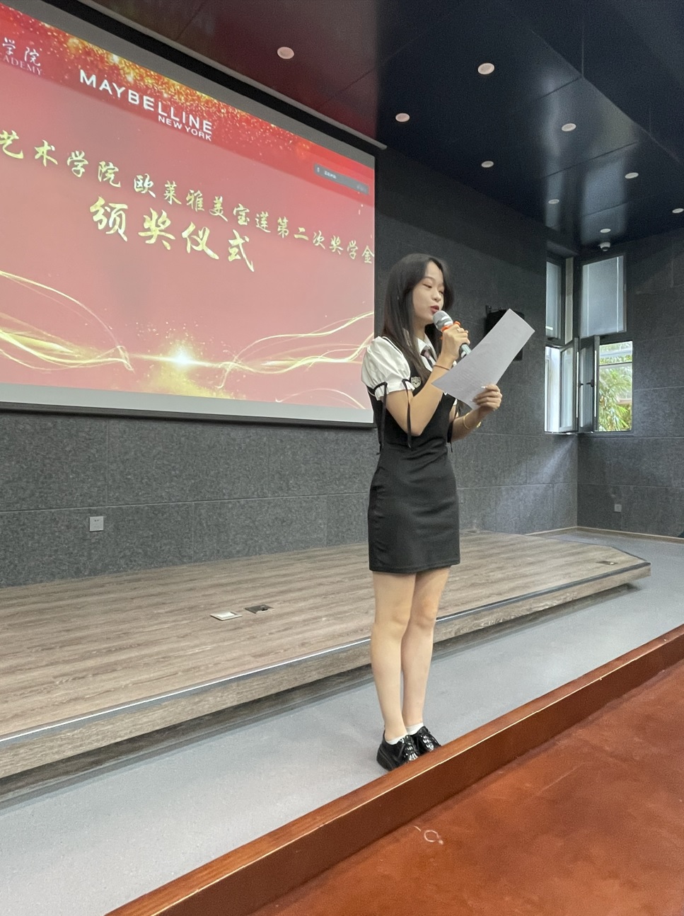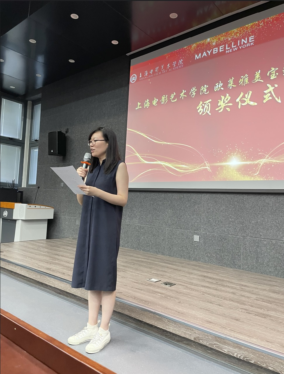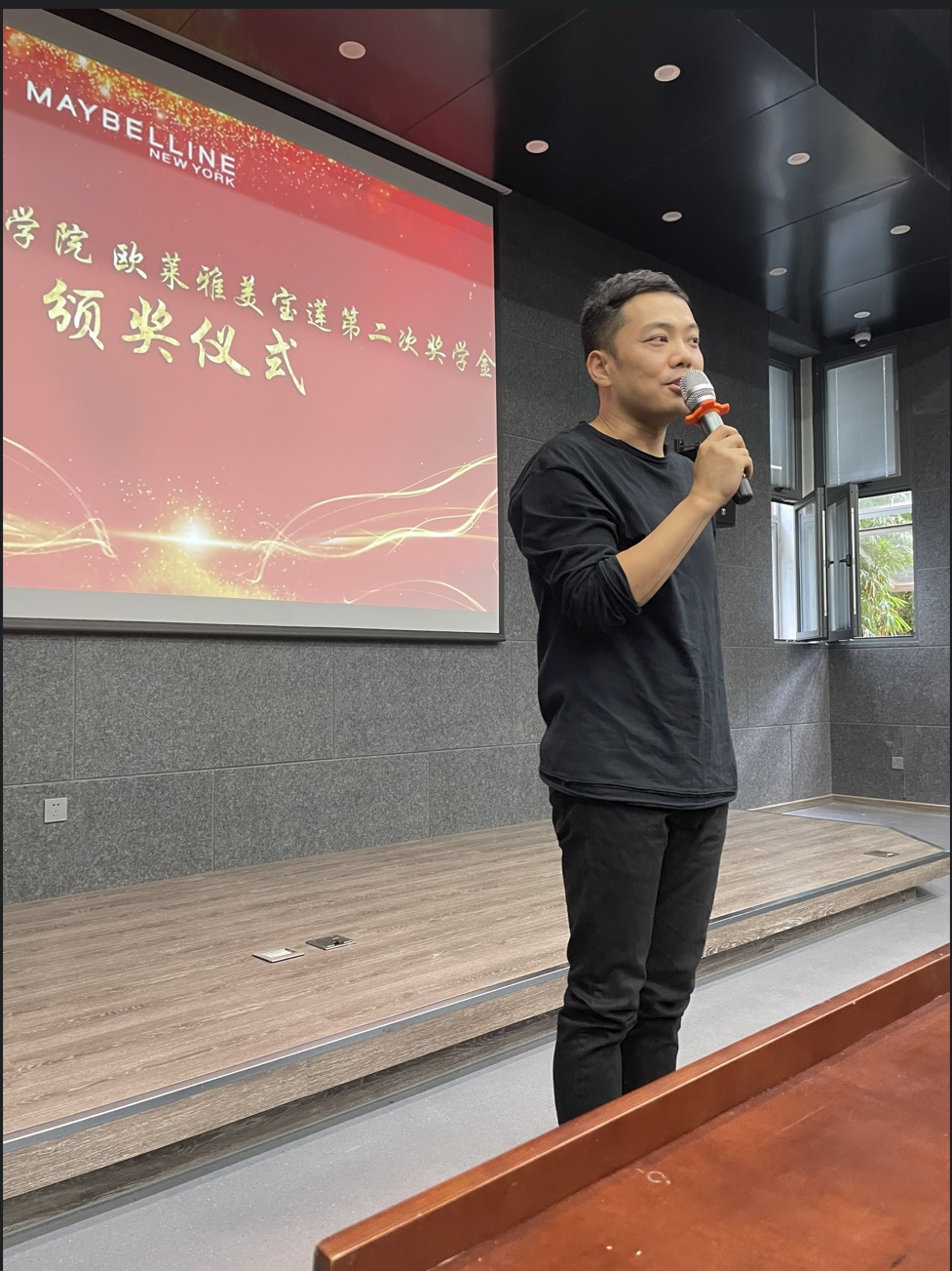 图3 欧莱雅美宝莲品牌培训总监夏了了代表公司对获奖学生表示祝贺