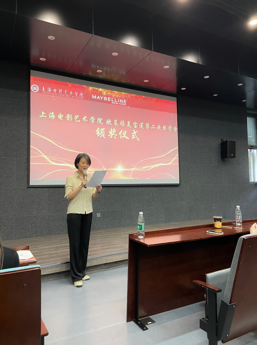 2022年9月20日下午,在上海电影艺术职业学院南校区B103举行了播音与主持专业美宝莲第二次奖学金颁奖仪式。学院执行院长江帆,党委副书记、副院长是科圣,视觉艺术中心主任顾平,播音与主持专业负责人陈静,欧莱雅美宝莲品牌培训总监夏了了,欧莱雅美宝莲品牌全渠道直播运营经理杨清等领导嘉宾出席颁奖典礼,学院教师及播音专业2020级和2021级同学们参加了颁奖典礼。