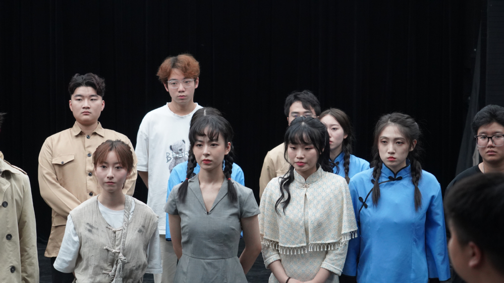 图2 陆小曼同学与同学们在青春版《国之当歌》排练现场