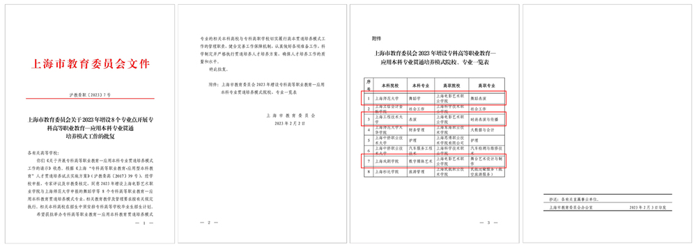 经学院立项研究,上海市教育委员会评审及批复同意,学院舞蹈表演专业将于2023年开设高本贯通模式试点。