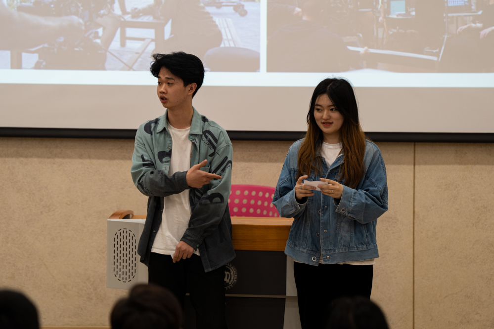 在讲座过程中的表演环节,柯珂导演引导学生领悟语言当中的潜台词,以及表演当中的最高任务。在学习过程中戏剧影视表演专业的同学很积极,勇敢的上台表现并且获得柯珂导演的现场鼓励和好评。