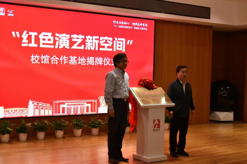 图1 我校领导李瑞祥与杨浦区文旅局副局长刘清鸿的共同揭牌仪式