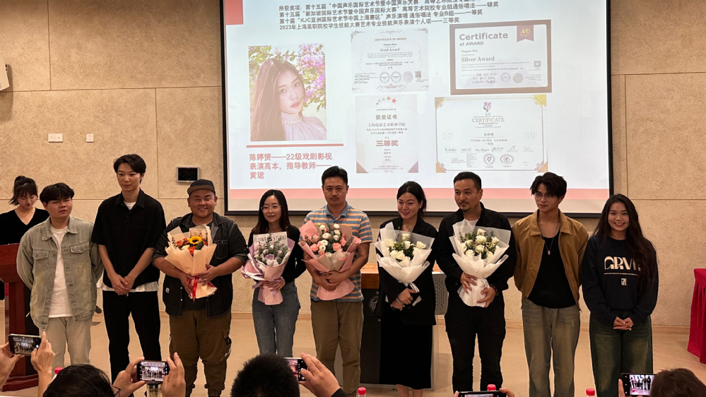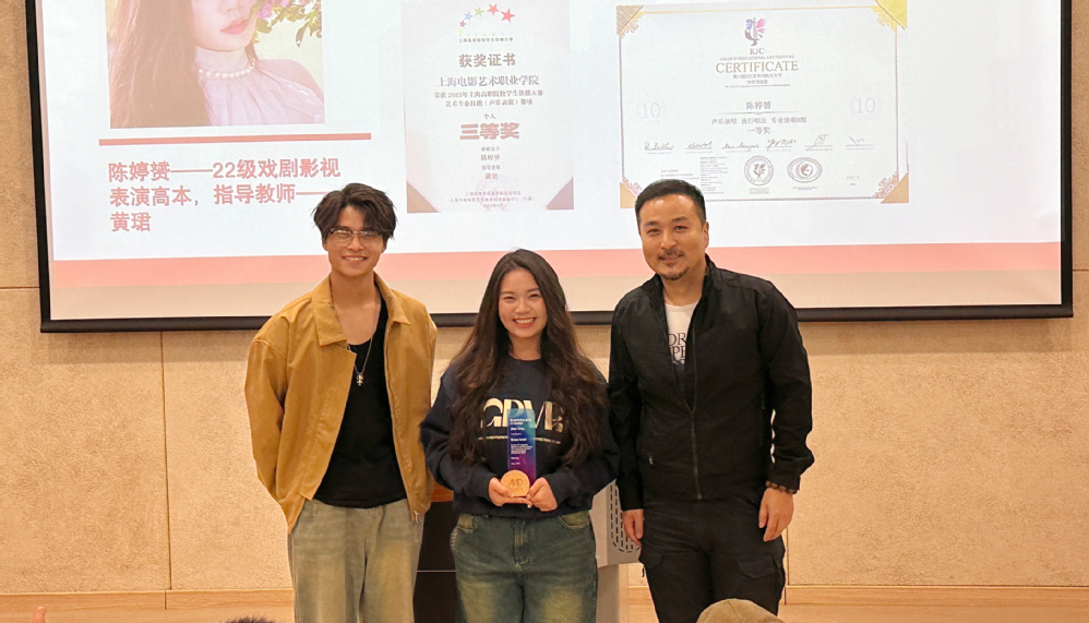 接下来进行了颁奖典礼,在第十届“KJC亚洲国际艺术节中国上海赛区” ——声乐演唱赛事中,分别由音乐剧表演专业21级同学黄佳明同学获得演唱B组三等奖、李伟鹏同学获得美声唱法专业演唱B组三等奖,表演专业22级同学陈婷赟通俗唱法专业B组一等奖。