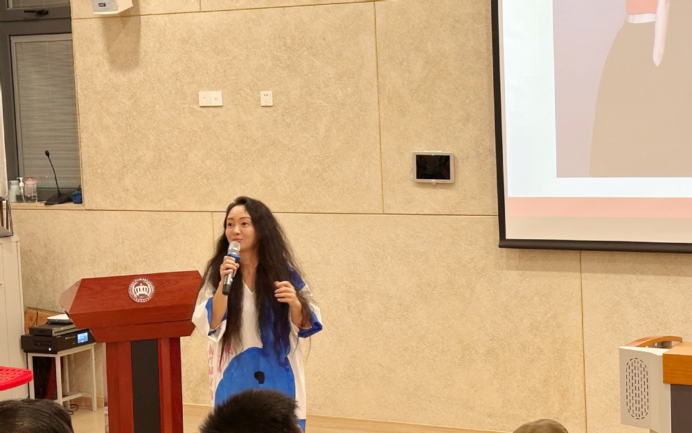 接下来还有一位行业导师与我们的专业老师,乐然表演艺术中心创始人、艺术总监,音乐剧制作人、编导--陶然老师。陶老师的讲话主题为敢于梦想勇于实现,陶老师通过自己的经历告诉我们,梦想是要有的,有了一个方向,拨开层层迷雾方能见彩虹。即使未来的路是我们未知的,只要敢于想,勇于做,我们的未来一切皆有可能!
