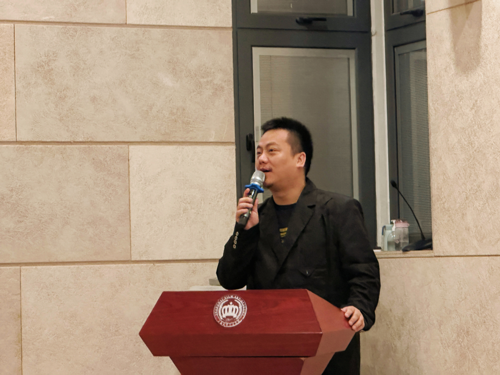 接下来由缪时客音乐剧创始人、音乐剧行业导师张志林老师为音乐剧表演专业的同学致辞。张老师表达了对本专业学生作为未来音乐剧演员的期待:包括一部音乐剧整体与部分之间的关系,同学们未来做演员要注重自身整体的修养,第一除了演唱是非常重要的之外,还需要把我们的形体、台词、表演的技能加强。演员要学会的不止有演,还有更多的方向,例如怎样整合一部剧、怎样编创与沟通,都是我们在校期间可以往背包装备的技能。