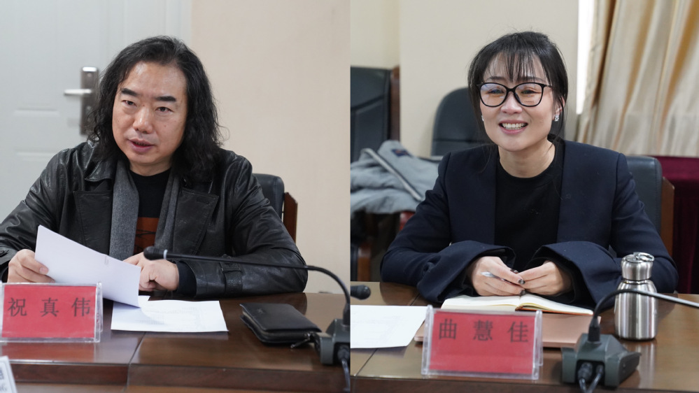 图2 祝真伟主任与曲慧佳院长分别进行院校介绍