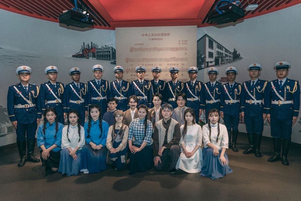 图2 学生在国歌展示馆演出照片 在这场演出中,我们见证了青春的激情与活力,感受到了音乐剧的无穷魅力。上海电影艺术学院音乐剧表演专业的学生们,用他们的才华和努力,为我们呈现了一部充满爱国主义精神,以当代大学生视角呈现的一部优秀作品。