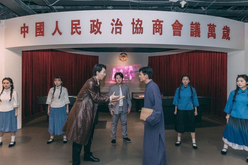 图3 学生在国歌展示馆演出照片 在国歌馆这个充满历史底蕴的空间里,学生们用真挚的情感和精湛的演技,诠释了《国之当歌》的深刻内涵。他们让我们看到了那个时代的英勇与无畏,也让我们感受到了今天的幸福与安宁。