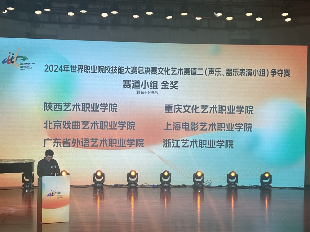 2024年10月27日,2024年世界职业院校技能大赛总决赛文化艺术赛道二(声乐、器乐表演小组)争夺赛在浙江正式开赛。作为职业技能领域的顶级盛事,来自全国高职院校的57支代表队207名参赛选手齐聚一堂,展开一场技艺精湛的技能较量。在这场激烈的竞争中,演艺学院的学生团队凭借《音乐剧目〈国之当歌〉青春版的创新演绎》项目独树一帜,最终荣膺争夺赛金奖。这份荣誉不仅是对专业技能教学的高度认可,更是对学院深化艺科融合推进教育教学改革实践探索的肯定。