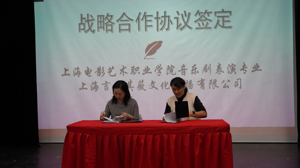 今天的成绩更离不开行业导师、校企合作单位的大力支持,学校音乐剧表演专业与上海言采其薇文化传播有限公司的战略合作协议签署,为学院产教融合搭建了又一个新的平台。未来学院将于言采其薇在演艺新空间的原创剧目、小剧场党课、国风小剧场以及音乐剧《风月赤心》等项目合作中开启新的征程。