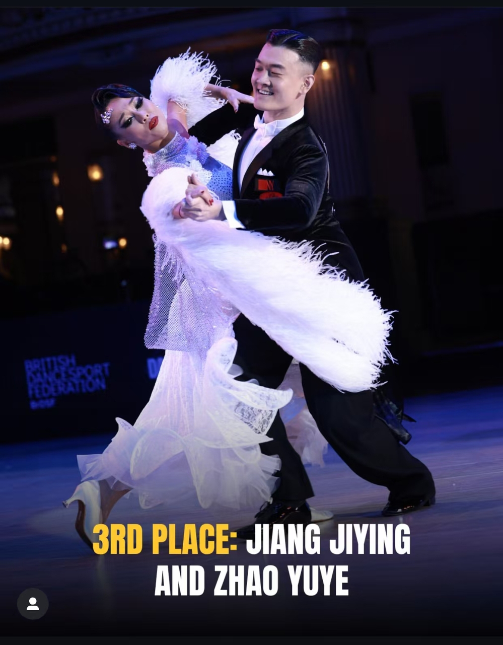 2025年4月24日 —— 在刚刚结束的首届WDSF黑池舞蹈节中,来自表演学院的青年教师蒋纪英和赵玉烨以精湛的技艺和优雅的舞姿,荣获WDSF Professional Super Grand Prix Adult - Standard(职业组标准舞)第三名,这是中国选手在该赛事中的又一次重大突破。
