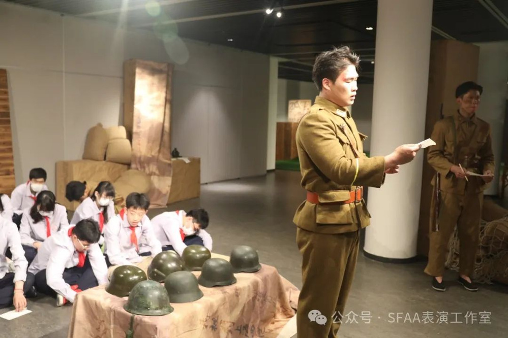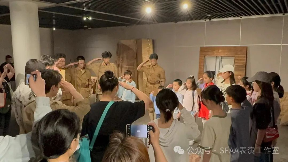 沉浸式体验,作为一种创新的艺术形式,打破了传统戏剧与观众之间的界限。上海电影艺术学院的学生们,通过零距离的互动,带领观众穿越时空,体验抗战英雄的壮烈与伟大。演出分为两场,旨在传递不同的情感与信息。演出分为两场,第一场在下午三点开演,面向的观众是两个特殊的群体。一个是身体具有缺陷的残障人士,同学们通过自己的表演给他们带去温暖。另外一个是充满着朝气和赤子之心的学生们,我校同学的演出,让他们感受到了先烈的伟大,激发他们更浓烈的爱国精神,使他们坚定的努力学习,将来建设祖国。第二场演出在下午六点启幕,本场演出重点在于家庭体验。让我们领略到战士们决战沙场的风采,在战士们身前是枪林弹雨,身后是万家灯火,为了祖国我们绝不退缩。他们越过雄关,他们驰骋疆场他们英勇杀敌,他们要以枪杆做笔写下一个崭新的中国。他们以热血为色,描绘一个青春的中国。通过戏剧的力量,观众得以领略战士们决战沙场的风采,感受他们为了祖国的明天,不惜一切代价的英勇与牺牲。