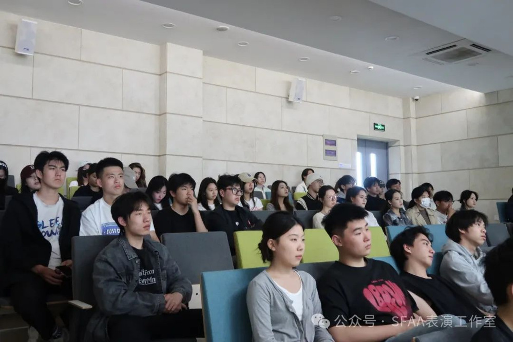 来到本次讲座现场的还有摄影师徐逸辰老师。徐老师告诉我们摄影就是以光线绘图。然后给我们简单讲述了一下在拍摄过程中不同视角的特性与景别的区别。讲解了摄影三要素光圈,快门和感光度IOS分别有什么作用。讲解的最后,为了让同学们更好的理解什么是动作片中的镜头与协调,徐老师现场邀请两位同学上台,拍摄了一段“打耳光”的镜头,生动地展示了什么是动作欺骗。