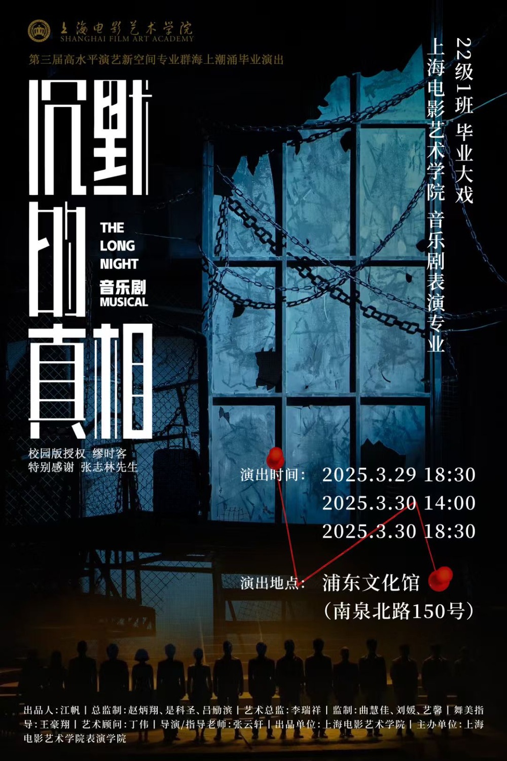 音乐剧《沉默的真相》剧情简介:改编自紫金陈的小说《长夜难明》,通过三条并行的故事线,深度挖掘故事内核,将“权与法”、“罪与罚”、“善与恶”呈现在观众面前。该剧讲述了检察官江阳、刑侦专家严良、支教老师侯贵平等角色追寻真相的故事,剧情跌宕起伏,线索步步串联,高能反转不断。音乐剧中的“流行摇滚”风格的音乐,与长夜下的压抑氛围相呼应,成为角色发声的出口。全剧在悬疑中埋伏大爱深情,既烧脑也泪目,用歌声呐喊,让沉默的真相触及人心。