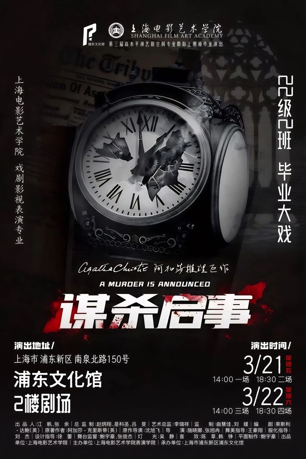 话剧《谋杀启事》剧情简介:“谋杀启事,十月十三日周五,下午六点半,在小围场会发生一场谋杀。朋友们务请接受此邀请,不再另行通知。”奇平克莱格霍恩镇,日复一日平淡无奇的日常,在这个特别的星期五,被打破了。一则启事,一则谋杀启事,预告着在小围场将有一场神秘的谋杀。优雅的主人、忠实的女伴、调皮的侄子、尖刻的侄女、文静的房客、神经的厨娘、唠叨的妇人、嫉俗的绅士,没有人承认与这则惊人的启事有关。那么是谁发布了这惊人的消息?又为什么要发布呢?为了有趣?为了刺激?还是……货真价实的谋杀预告?