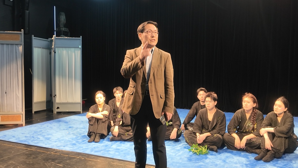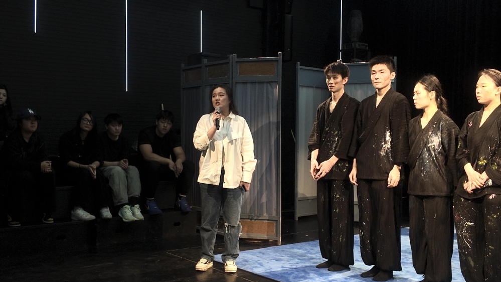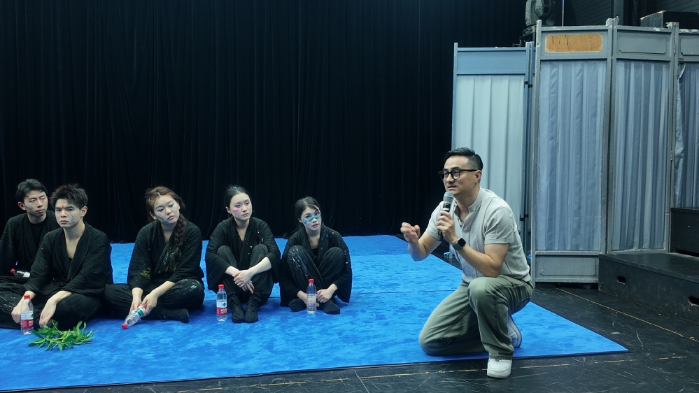 在师生交流环节,上海师范大学表演专业23、24级研究生们率先做了自我介绍并分享了《木盆记》的创作方法论。针对“如何将生活体验转化为舞台语言”的提问,导演、编剧唐剑威副教授提出“写意观察-诗意转化“的创作论,并揭秘了原创肢体剧的排演流程。